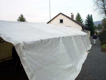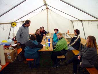 Nicht so bei Lars! Er stellte uns für einen äusserst günstigen Preis ein Zelt zur Verfügung, das problemlos 100 Personen aufzunehmen in der Lage ist. Zudem stellte er uns fünf Kisten KöPi und weit über 50 hausgemachte Grillwürstchen zur Verfügung. An dieser Stelle unseren Dank an den Campingplatz!