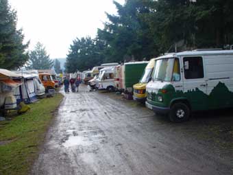 Da am Donnerstag starker Regen einsetzte, war der Platz bei der Ankunft bereits sehr matschig. Glücklicherweise herrschte dann den Rest des Wochenende trockenes Wetter, so daß sich die Lage nicht verschlimmerte. Trotzdem hatten einige Fahrzeuge Probleme mit der Traktion auf dem weichen Grund.