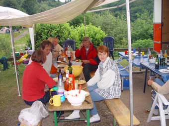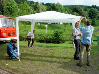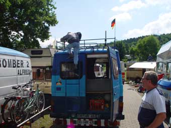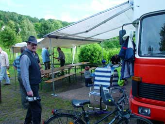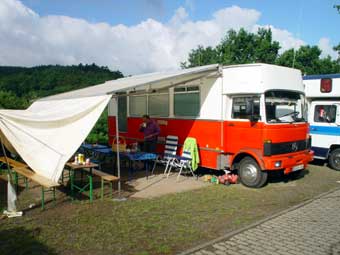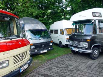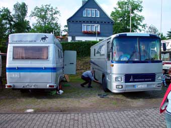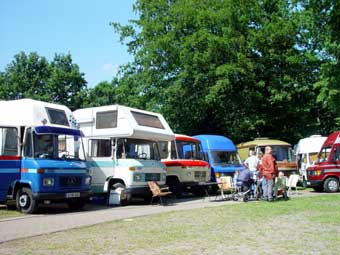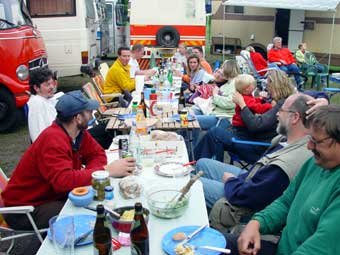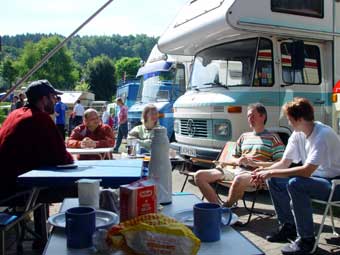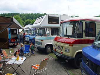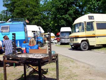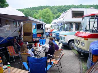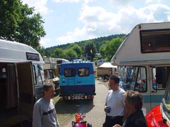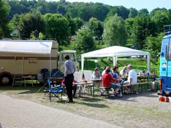 Von 19 angemeldeten Fahrzeugen kamen letztlich 23!!! Das hat natürlich für etwas beengte Verhältnisse gesorgt, hatte aber auch den Vorteil, dass nun Busbesitzer ohne Markise plötzliche die des Nachbarn nutzen konnten ;-)
