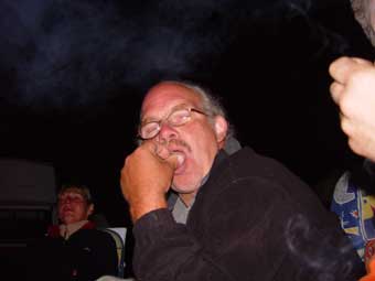 ![]() Der gestellte Grill dient auch als Lagerfeuer |