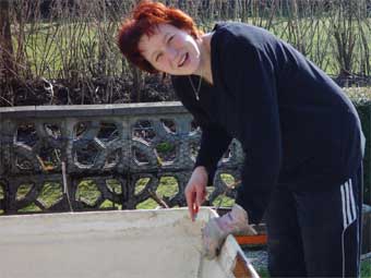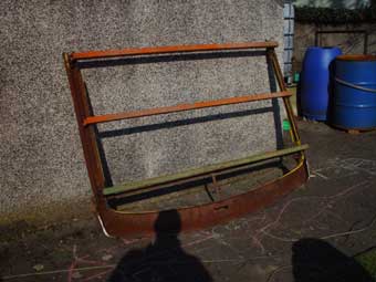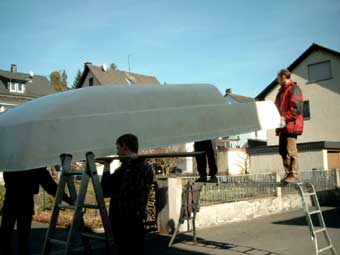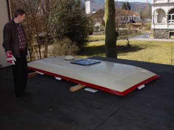 So lag es also in unserem Garten, das GFK-Dach. Nun musste der Rest der alten Karosserie sauber von dem Dach getrennt werden, ohne das GFK-Material zu beschädigen. (Keine Arbeit, die wirklich Spass macht...) |