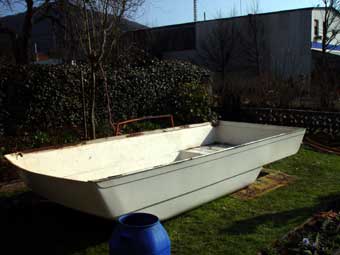 Wieder einmal spielte hier der Zufall mit. In meiner direkten Nachbarschaft lag ein Hochdach, das der Besitzer als Gartenteich nutzen wollte. Nachdem ich es mir anschaute, war schnell klar, daß es für einen Düsseldorfer mit kurzem Radstand war. Da ich sowieso plante, das Dach zu erhöhen, schwatzte ich meinem Nachbarn seinen Gartenteich für EUR 150,- ab.