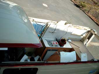Es ist soweit - das Dach ist ab! Der Bus bietet so ein sehr eigenartiges und ungewohntes Bild. Sollte ich mir vielleicht doch lieber einen guten Sattler suchen und ein Cabrio daraus machen lassen? ;o) |