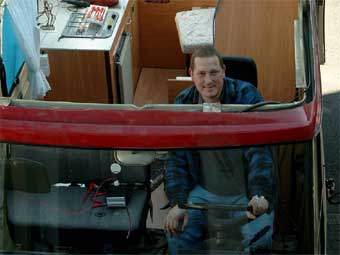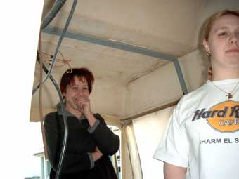 Nun wird die Arbeit auch von den Frauen begutachtet. Begeisternd ist die jetzt enorme Stehhöhe in dem Fahrzeug. Selbst ich mit meinen 1,97m muß mich strecken, um an die Decke zu reichen... |
