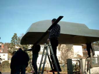 Nun folgt noch das Abglätten der Klebefuge - dann ist das Dach soweit fertig. Jetzt müssen nur noch Versteifungsspriegel in die Karosserie geschweißt werden.... |