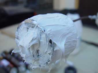 ... und das ist das Ergebnis dieser Arbeit. Weißer GFK-Staub setzt sich überall ab wie Pulverschnee. |