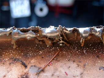 Jetzt muß die Schnittkante entgratet werden und der Schleif- und Schneiddreck entfernt werden, um der zukünftigen Korrosion möglichst wenig Angriffspunkte zu gönnen. |