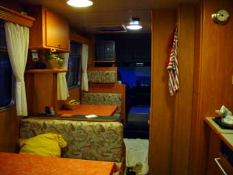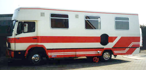 Das selbstausgebaute Wohnmobil ist ein MB 814, 6 Zylinder, 150PS, von Bj. 1994, hat eine Länge von 8m, eine Breite von 2,5m und eine Höhe von 3,1m. Der KM-Stand zum 1. MB-Mobil Treffen betrug gerade mal 100000km.