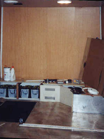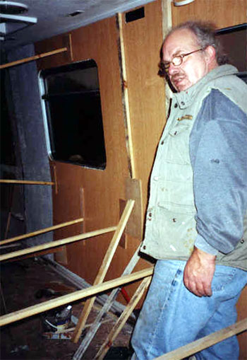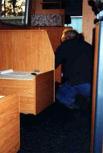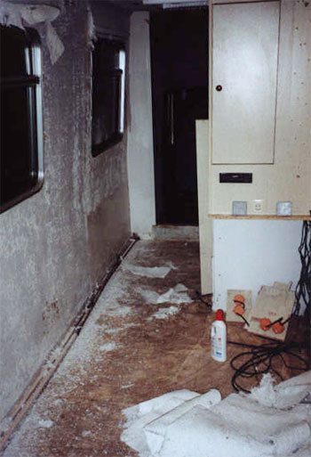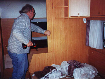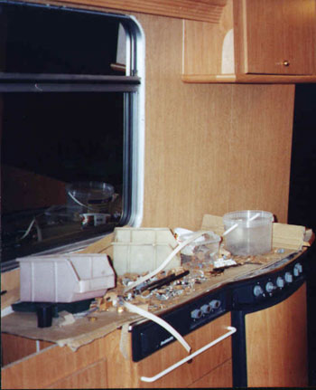 Dann wurde ein Unfall-Wohnwagen (ein 7m Dethleffs von 1996) gekauft, aus dem alles, was gebraucht wurde in die Sparkasse eingebaut wurde.