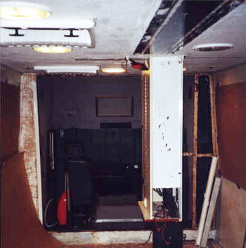 Da beim Kauf des Fahrzeugs in Saarbrücken im Oktober 2001 noch der gesamte Sparkassenausbau installiert war, wurde dieser Ausbau zuerst ausgeschlachtet.