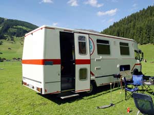 Mit diesem Wohnwagen, einem Hobby 495MB fing unsere Camperzeit im Jahre 1999 richtig an. Bis dahin sind wir lediglich ab und an mit dem Zelt unterwegs gewesen. Da wir mittlerweile Nachwuchs bekommen haben, haben wir uns zu der Wohnwagenlösung entschlossen. Da wir mit Wohnwagen aber keinen weiteren Anhänger mehr ziehen können, wir aber noch Motorrad und Boot hatten, musste uns der Weg früher oder später zu einem Wohnmobil führen. |