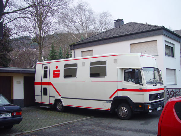 Wir wollten uns vergrössern und suchten nach einem Mercedes Benz 814D mit Kofferaufbau. Den wollten wir dann wieder in Eigenarbeit zum Wohnmobil umfunktionieren. Die Suche nach einem geeigneten Basisfahrzeug gestaltete sich dann doch sehr schwierig. Der Grund ist, dass die LKW in der Regel sehr schlecht gepflegt werden und bereits nach nur zehn Jahren einen sehr schlechten Zustand aufweisen. Ausnahmslos alle Fahrzeuge, die ich besichtigt habe, hatten einen furchtbar vergammelten Hilfsrahmen. Die meisten Koffer wiesen Spuren rabiater Handhabung auf. Unter den besichtigten Fahrzeugen waren auch einige Fahrzeuge, die in der Vergangenheit als Mietwagen fuhren. Bei allen probegefahrenen Exemplaren war hier die Motorbremse festgegammelt. Offenbar deshalb, weil die Kunden nie mit einem solchen Fahrzeug gefahren sind und deshalb auch niemals die Motorbremse betätigen. Abermals half uns der Zufall, so dass wir bei MOBILE.DE eine für uns interessante Anzeige fanden. Verkauft wurde ein ehemaliger Sparkassenbus mit einer Hartmann-Spezialkarosserie. Dieses Auto besichtigten wir und entschieden u ns aufgrund des hier recht guten Zustands zum Kauf. Einen Bericht zum Ausbau dieses Autos habe ich hier erstellt. |