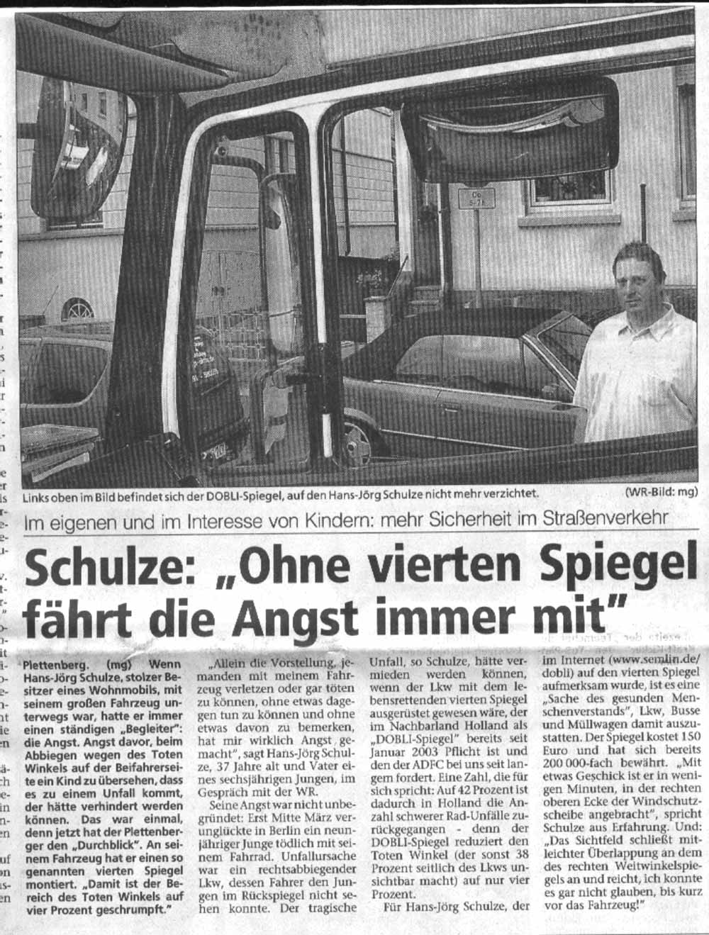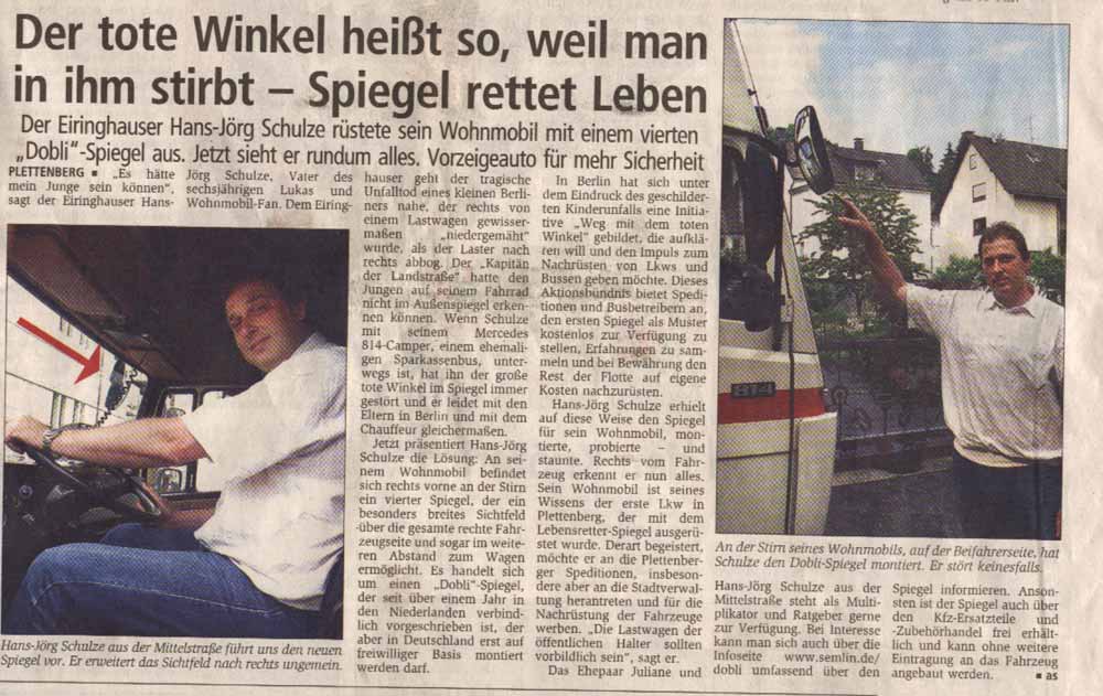Hier noch zwei Presseberichte zu dem, von mir montierten Zusatzspiegel: